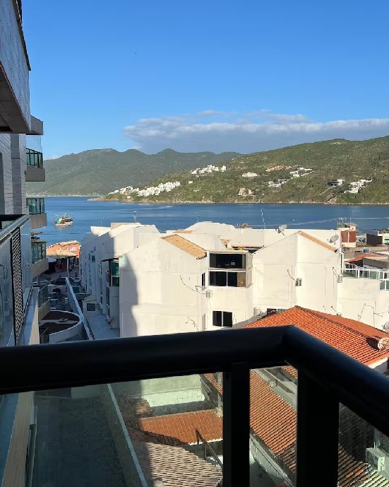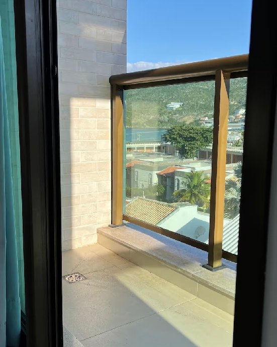 - Varanda com vista lateral para o mar.